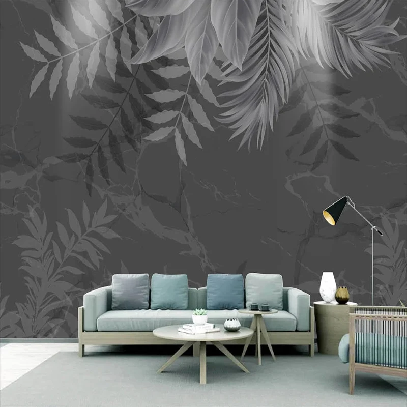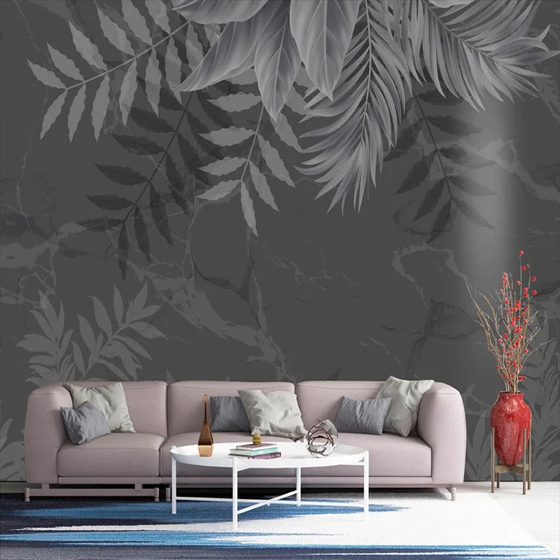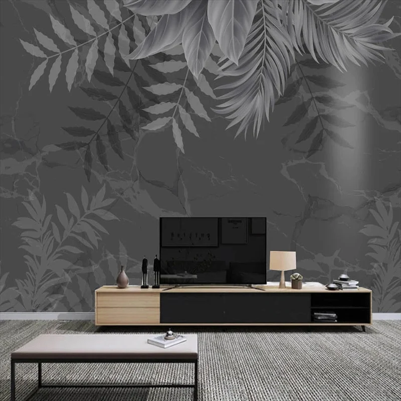 Современные обои с черными мраморными листьями, гостиная, телевизор, диван, спальня, домашний декор, фото, настенная живопись, абстрактные обои