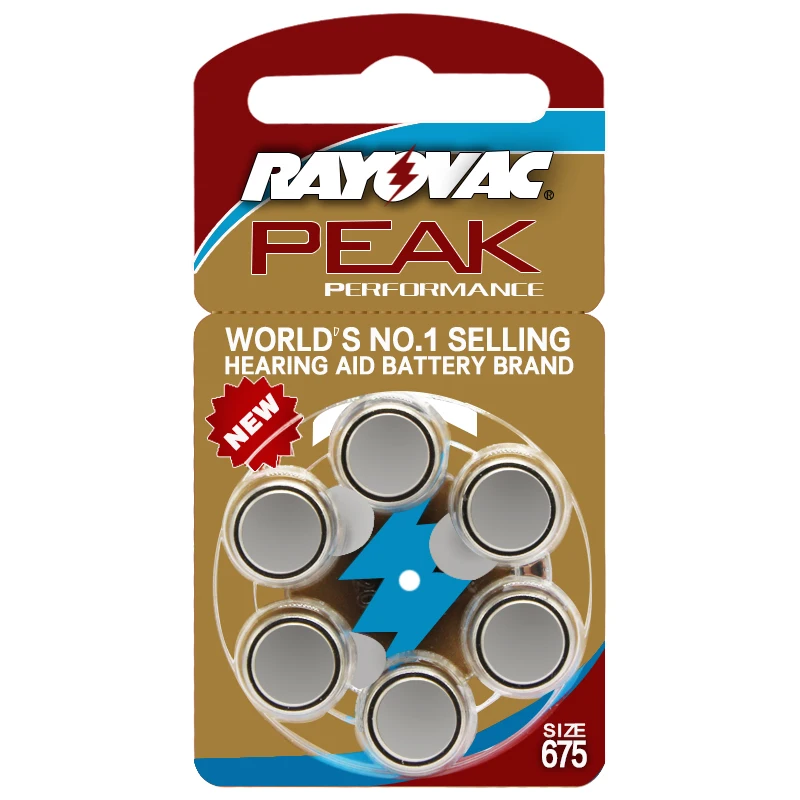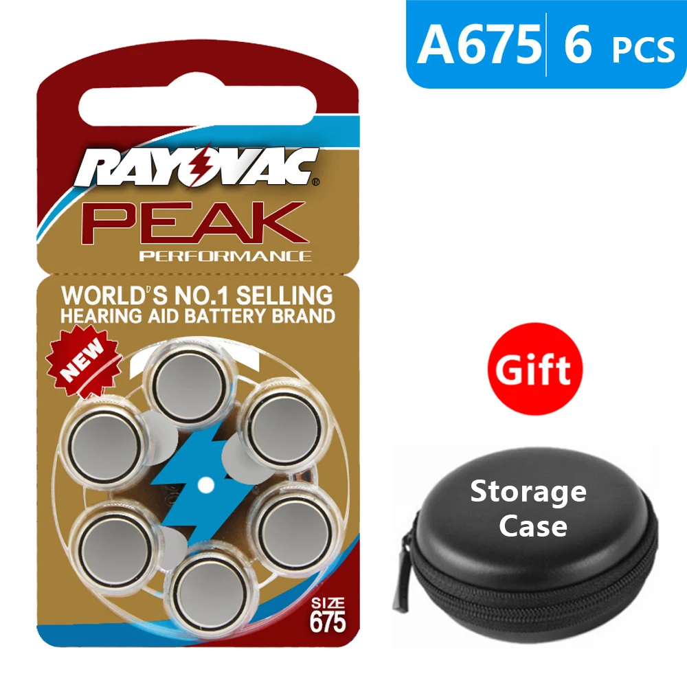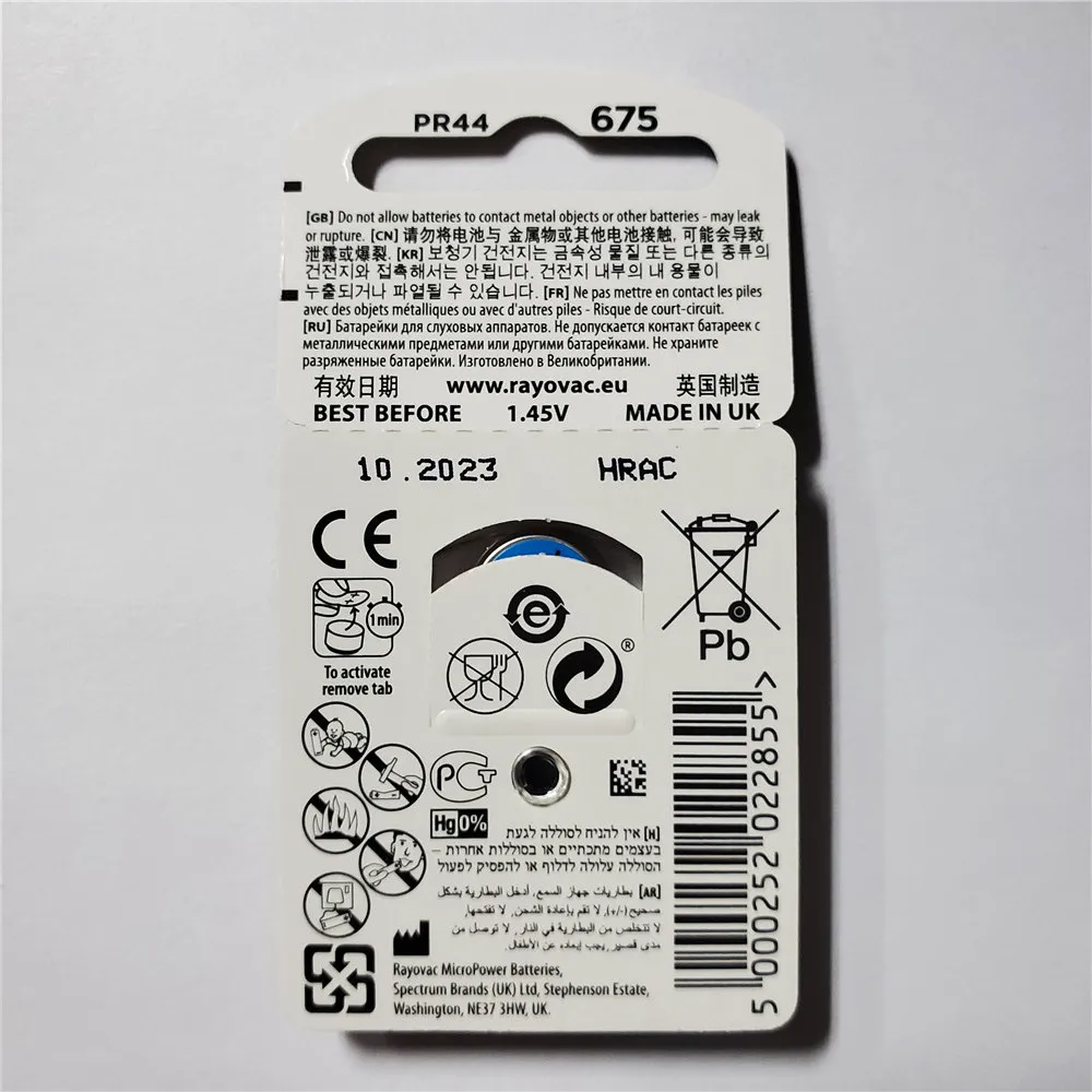Батареи для слухового аппарата, размер 675 za Rayovac, пиковая производительность, упаковка из 6, синий Tab PR44 1,45 в тип A675, цинковая воздушная батарея