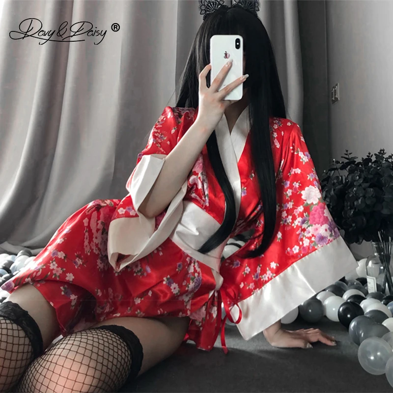 Сексуальное японское кимоно костюмы косплей, японский традиционный стиль, Женский юката наряд, кавайная Пижама, комплект из 3 предметов, стринги JA023