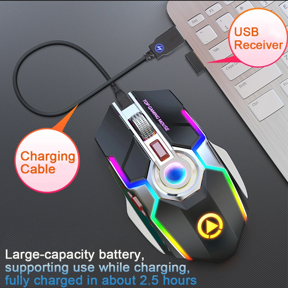 Перезаряжаемая Беспроводная Бесшумная светодиодный компьютерная мышь с подсветкой USB оптическая эргономичная игровая мышь компьютерная мышь для ноутбука