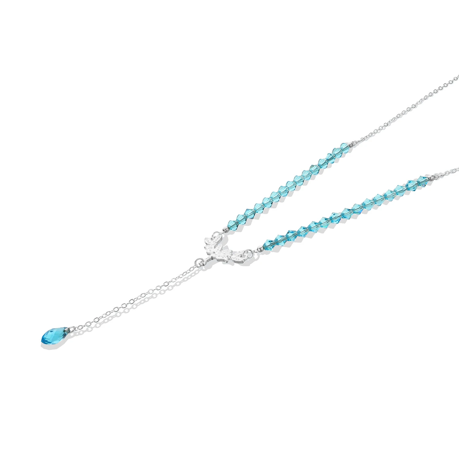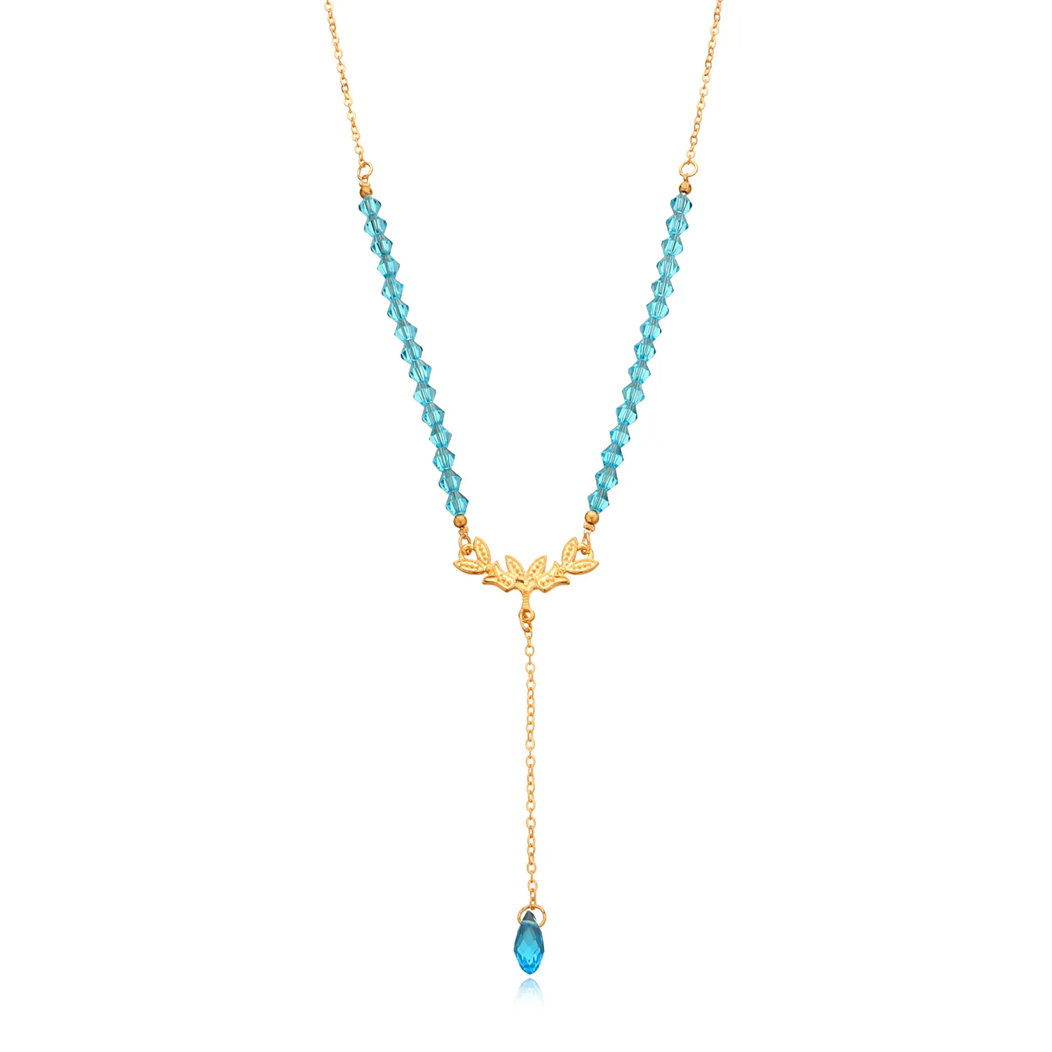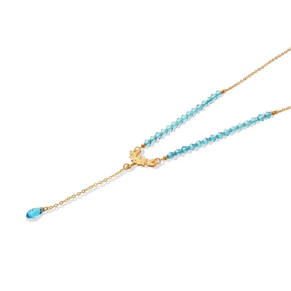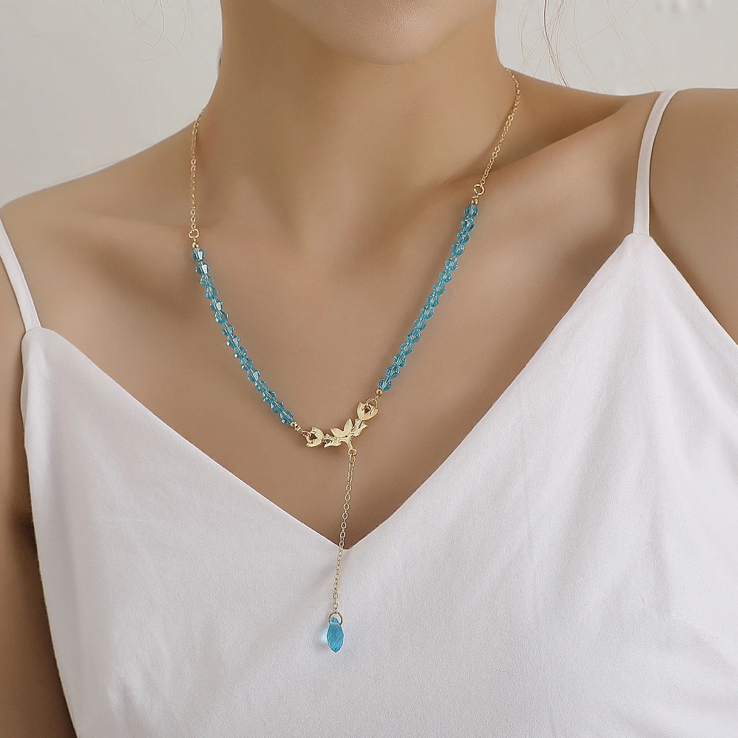 Богемное синее ожерелье, стеклянные бусины из хрусталя, Длинная Золотая цепочка, подвеска с кисточкой, ожерелье, женские подарки, ювелирные изделия