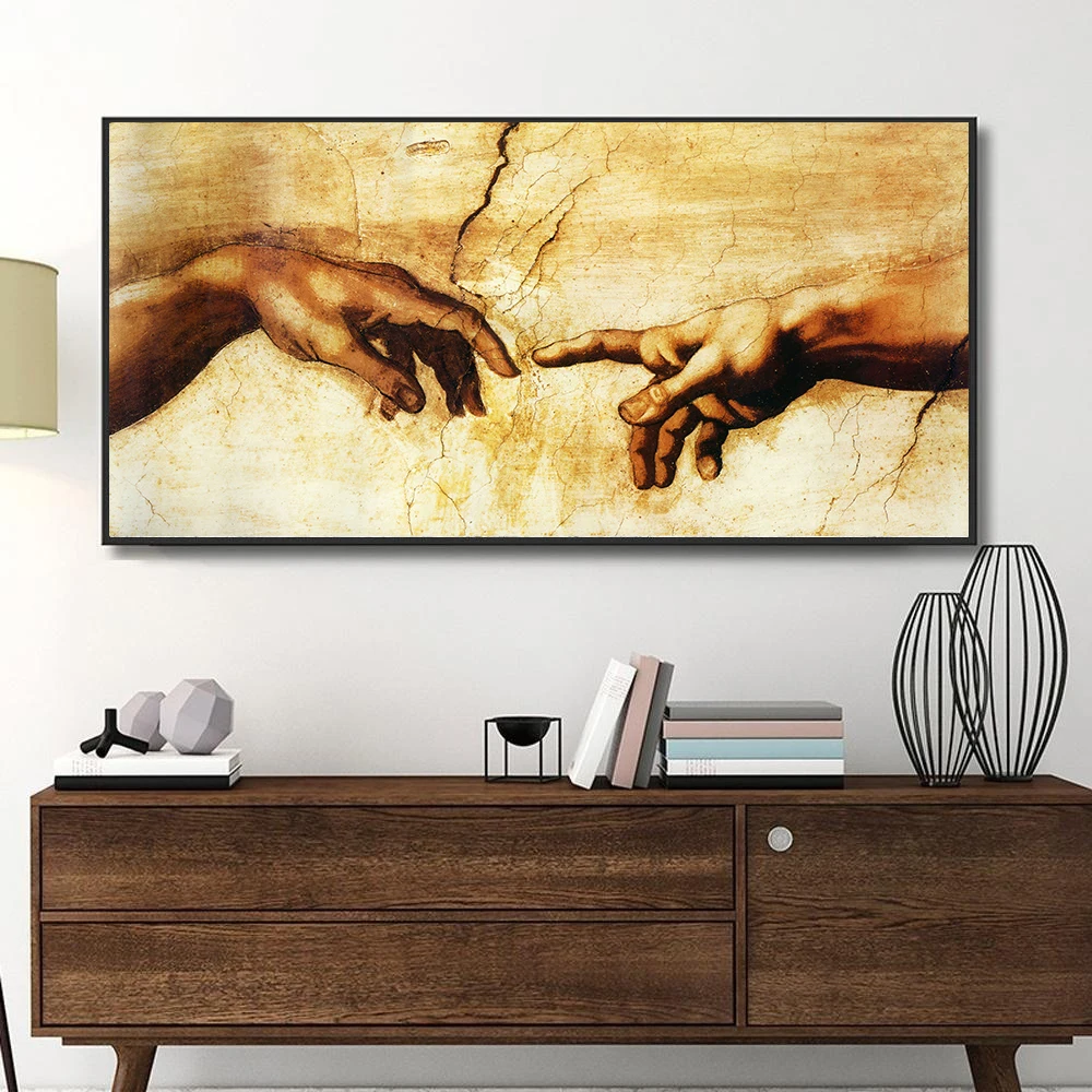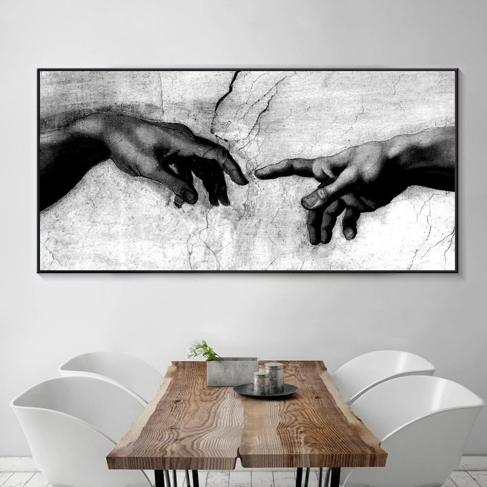 Настенная живопись AAHH, холст, черно-белый холст, художественное украшение для дома, картина маслом на канаве с изображением руки божией сотворения Адама