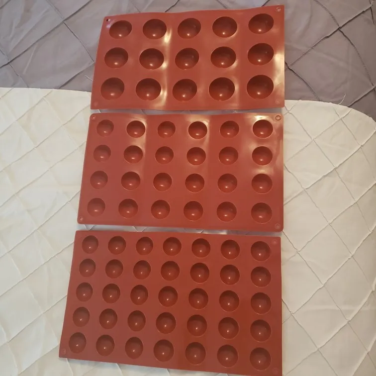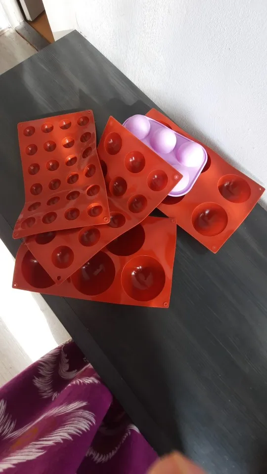 Отличные формы. Доставка до СПб меньше 2х недель. Получила на почте.Отправили очень быстро.С продавцом не общалась.Упаковано в обычный пакет.Пришло без повреждений. При распаковке был запах, но после мытья исчез. Соответствует фото и размерам,которые указал продавец. Покупала 3 формы за 720₽. Сами формы разные по плотности,но все полусферы очень гладкие,без каких-либо неровностей.Советую товар и продавца.Самая плотная форма-это большие полусферы. Цена-качество 10****. Дополню отзыв после использования.