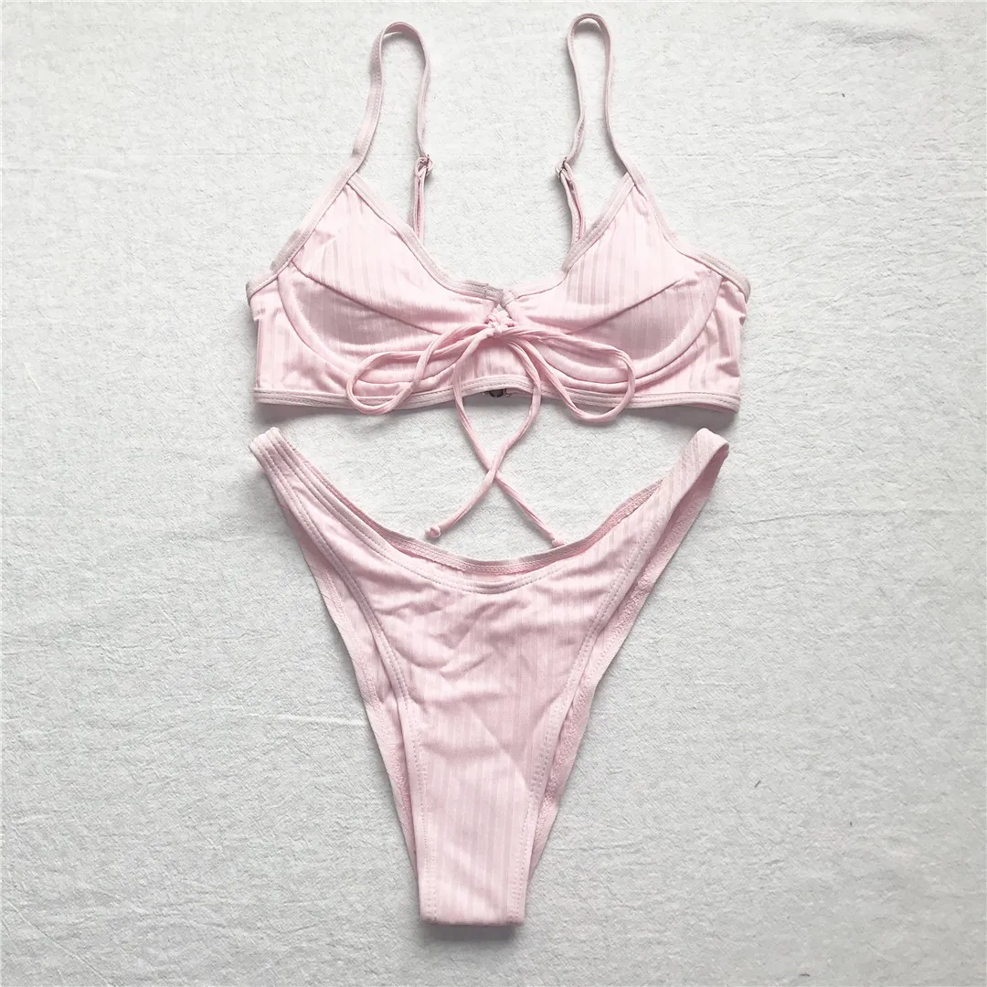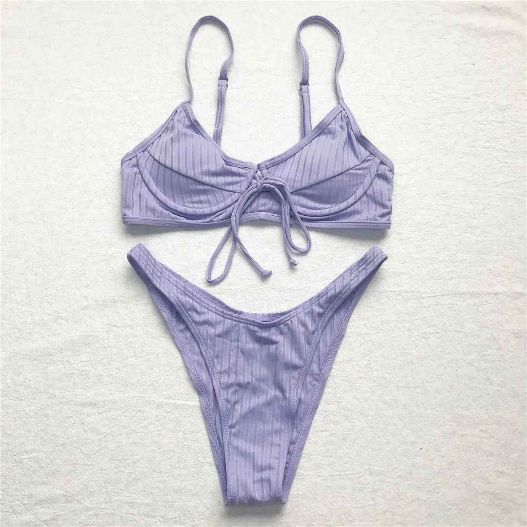 Женский купальник в рубчик, комплект бикини из двух частей, стринги...