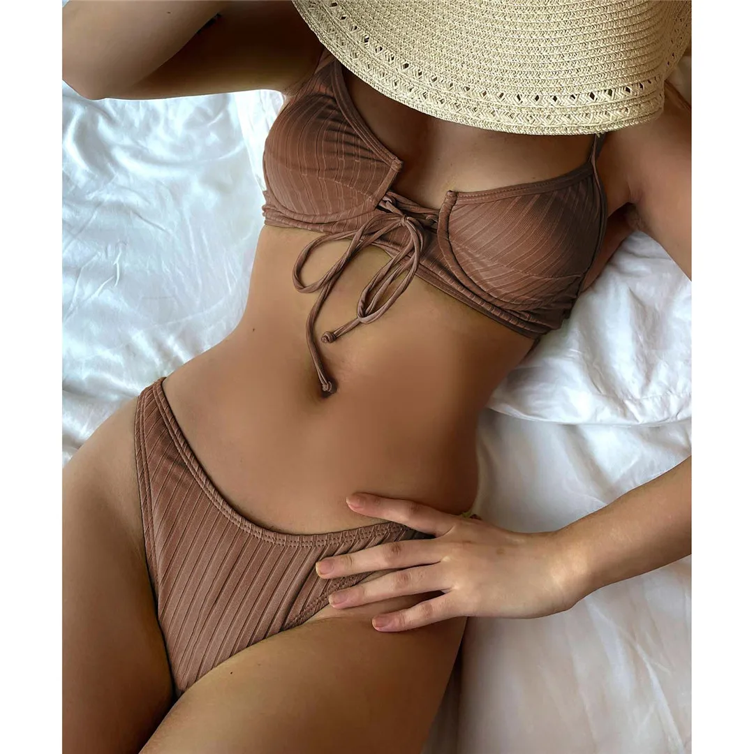 Сексуальный ребристый бикини на косточках, купальный костюм, женска...