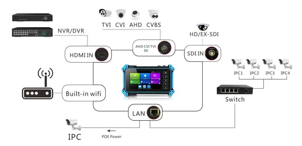IPC-5100 Plus Поддержка 8MPAHD TVI CVI с батареей (цифровой кабель Трассировка опционально) + HDMI in, VGA in