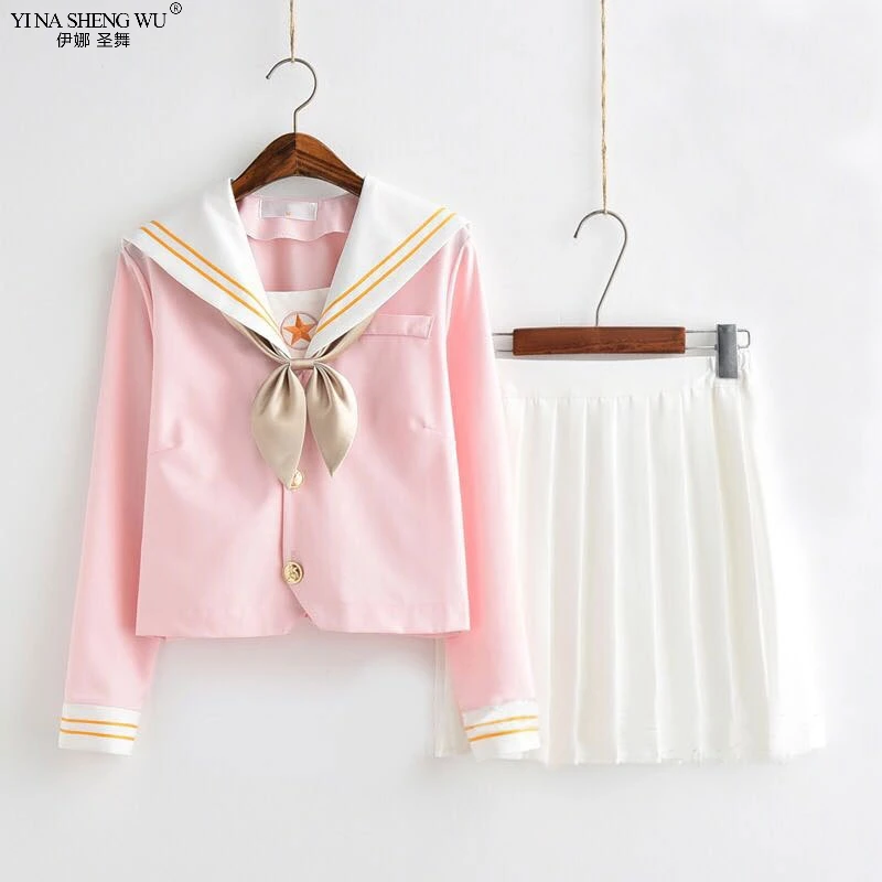 Новый Свет сакуры розовая японская школьная форма школьница матросский костюм Студенческая Одежда для девочек аниме Kawaii Косплей корейский стиль