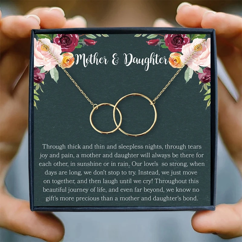 Подарки; Комплект одежды для мамы; Дочки; Ожерелье блокируя Infinity 2 круги кулон ожерелье День Матери ювелирные изделия, подарок на день рождения, эстетическое