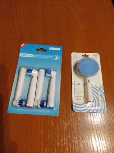 пришло за 12 дней, отправлено сразу, качество пластика очень хорошее, подходит для орал би, только надевается плотненько, с усилием, работает и жужжит как оригинал. в чистке ещё не пробовала, после дополню отзыв о качестве щетинок, упаковка качественная, с перфорацией. насадка для мытья лица не очень нет винтика сверху. буду открывать спор.