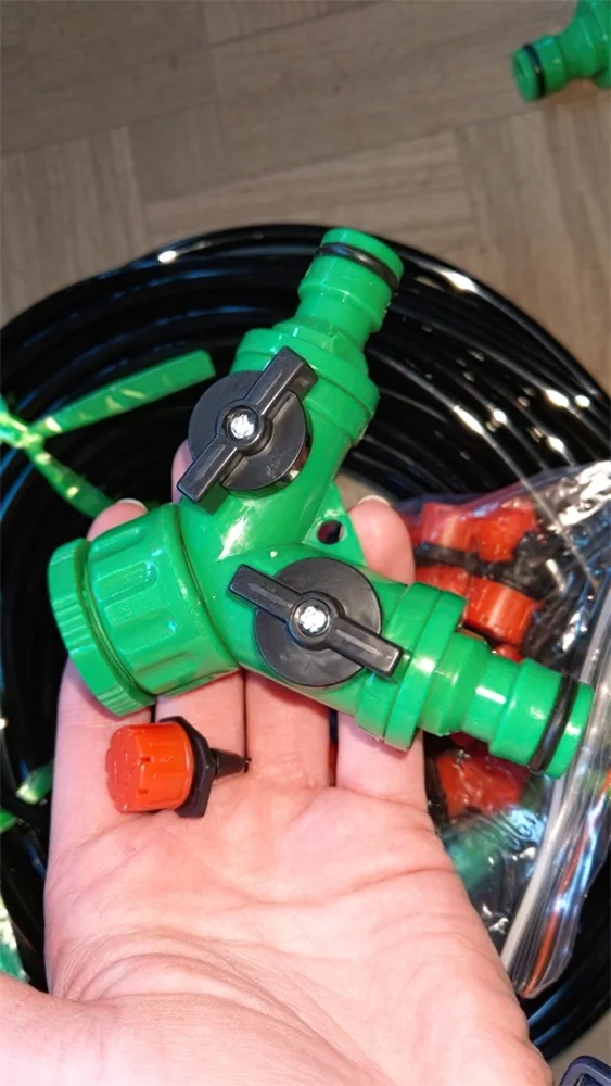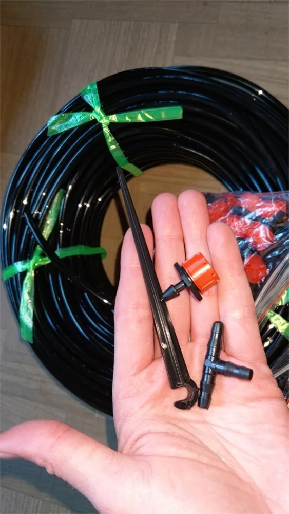 В наборе есть все необходимое для системы орошения стартера. Имеет большую длину труб и достаточно разъемов и насадок, чтобы ходить по саду и обслуживать все мои растения. Насадки имеют достойное качество и не являются дешевыми прикольными пластиковыми предметами. Подходит для моего сада. Спасибо!