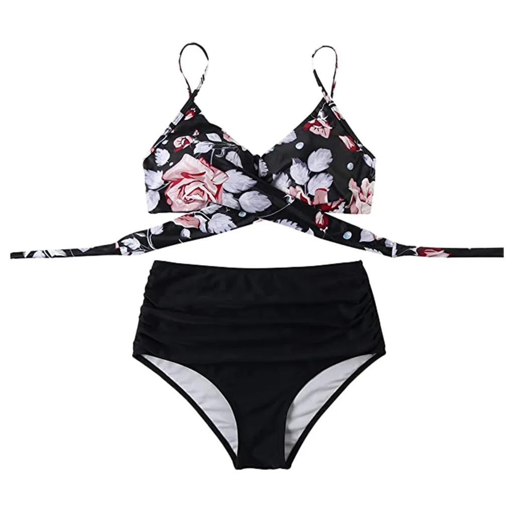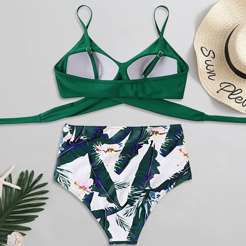 Женский раздельный купальник, леопардовый бикини пуш-ап с тропическим принтом, с высокой талией, M6