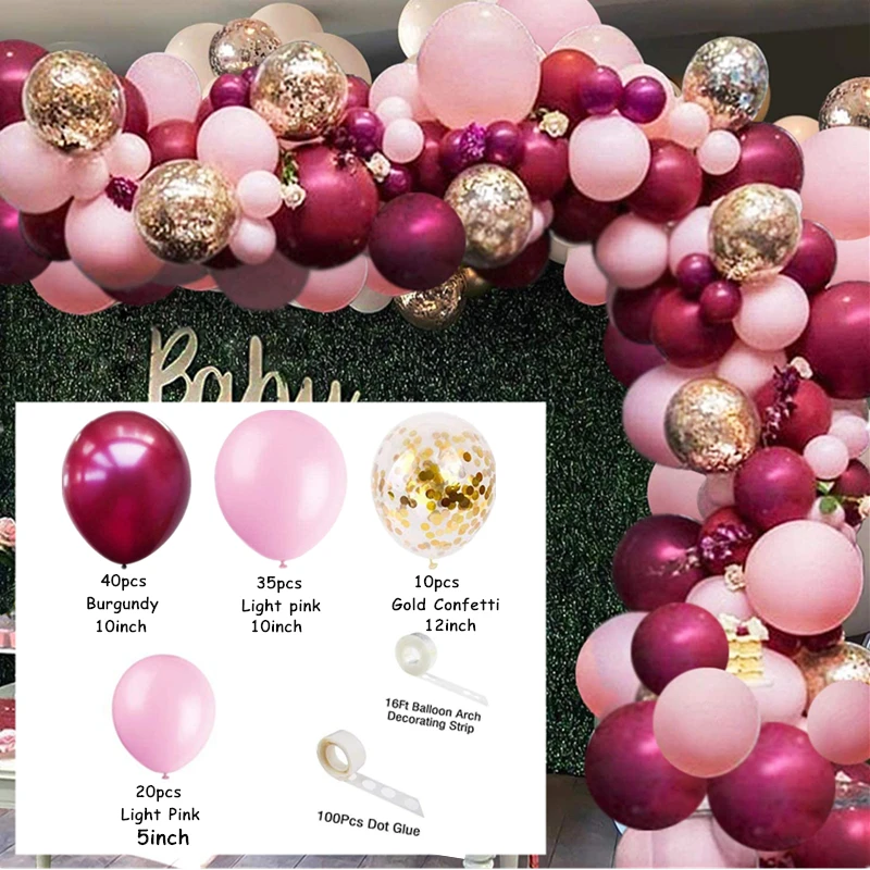 Латексные воздушные шары, комплект гирлянды, бордовый, розовый, с конфетти