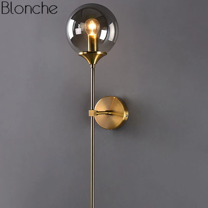 Современный настенный светильник в скандинавском стиле, прикроватная лампа со стеклянными шариками для спальни, настенное бра для ванной, светильник щение для зеркала, светильник лестницы