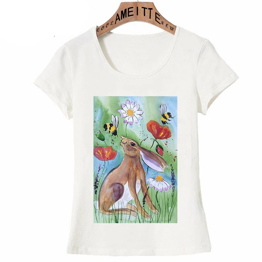 Новая летняя модная женская футболка повседневные топы в стиле хип-хоп с принтом кролика среди цветов милые футболки для девочек крутые разноцветные футболки с коротким рукавом с изображением кролика