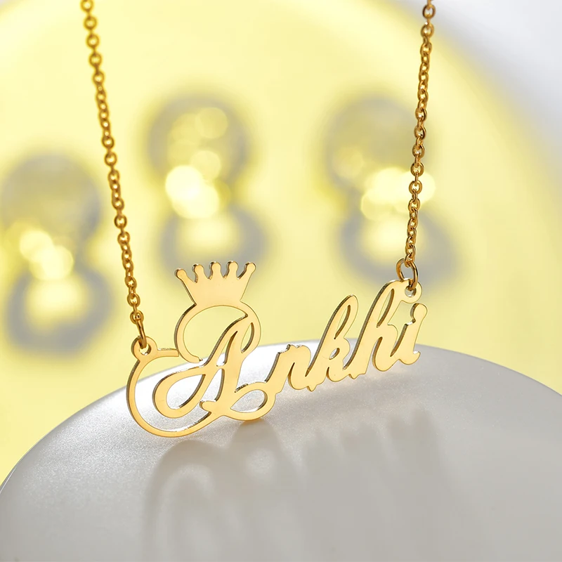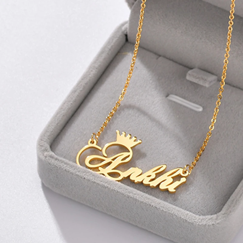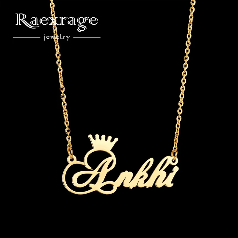 Ожерелье с именем короны Raexrage на заказ, ожерелье с персонализированной табличкой из нержавеющей стали, ожерелье, подарки на день рождения