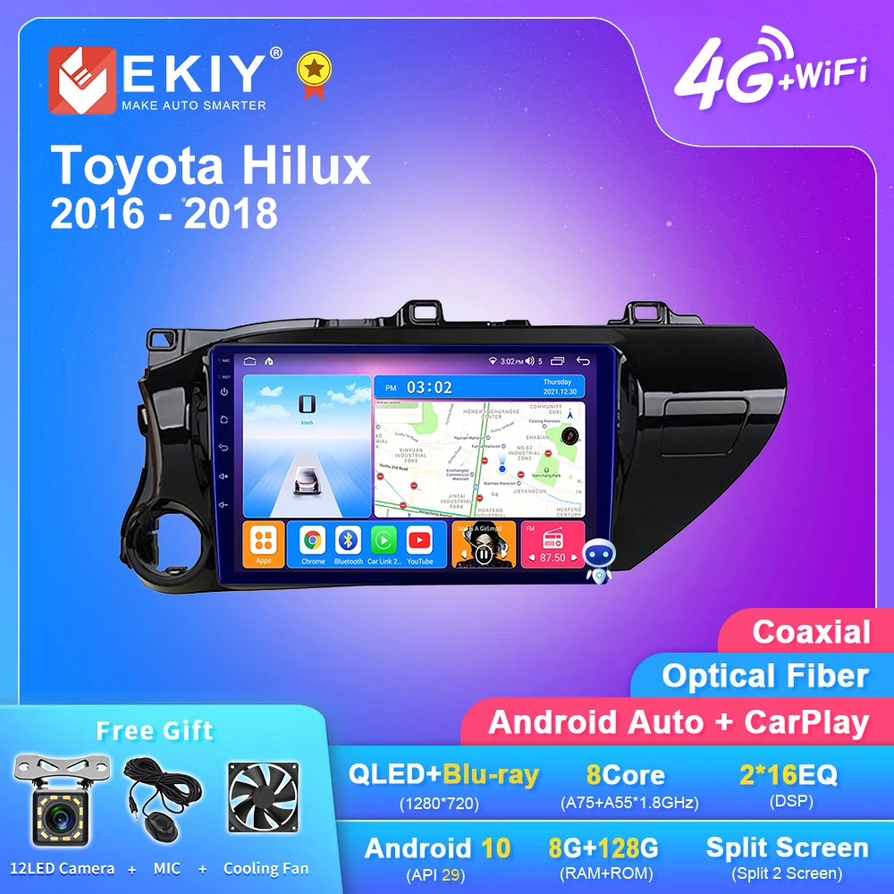 EKIY T7 QLED Android 10 Автомобильный мультимедийный плеер 6G + 128G для Toyota Hilux 2016 2017 2018 Авто Радио Стерео GPS Navi Wifi Carplay BT