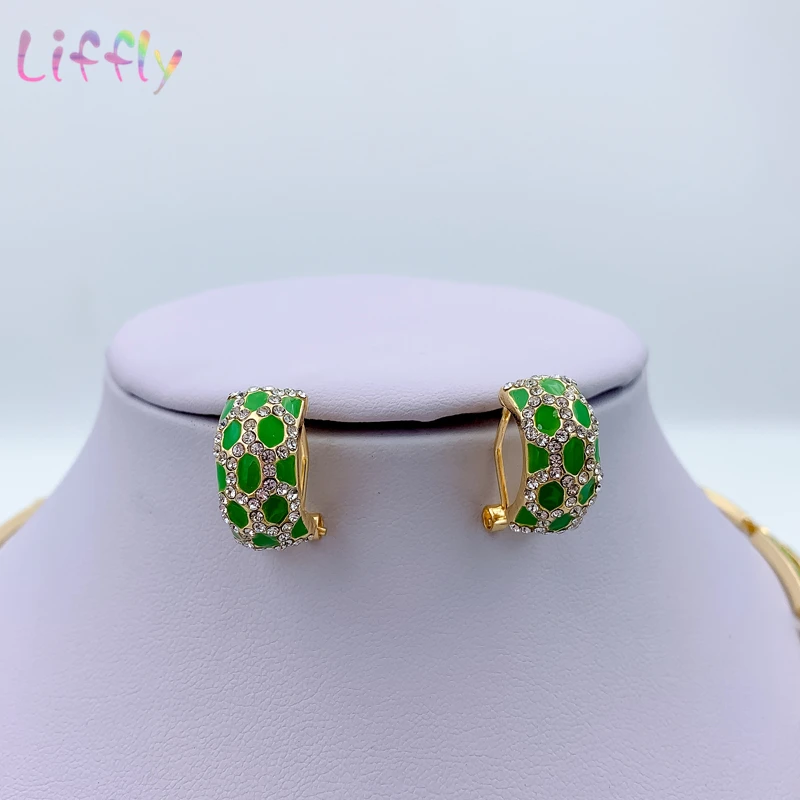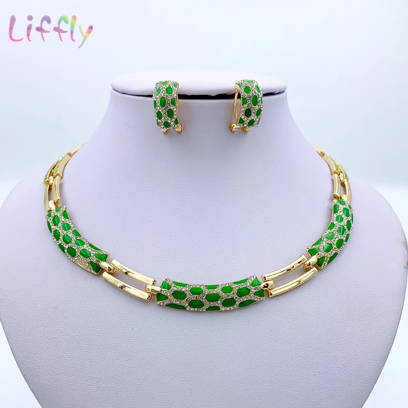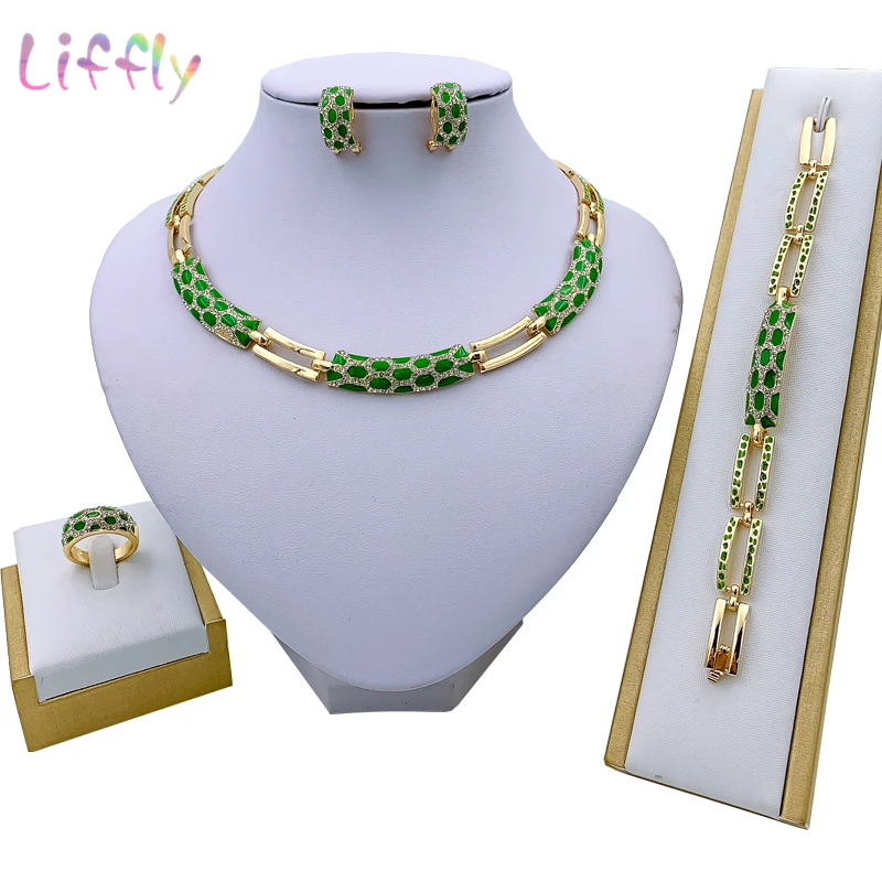 Дубай женские ювелирные изделия модное зеленое ожерелье браслет банкет элегантные женские серьги кольцо Кристалл Ювелирные наборы