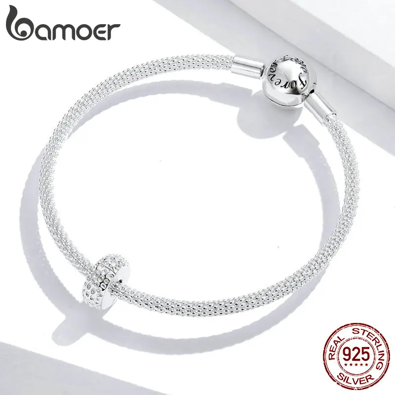 Минималистичный браслет bamoer, из настоящего серебра 925 пробы, с зажимом, подходит для оригинального серебряного браслета или браслета, DIY, ювелирные аксессуары SCC1490