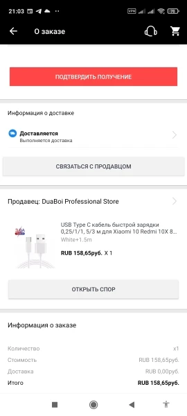 Доставка 20 дней до Карелии. Кабель хороший. 2м. турбо работает на Mi Note 10 Lite