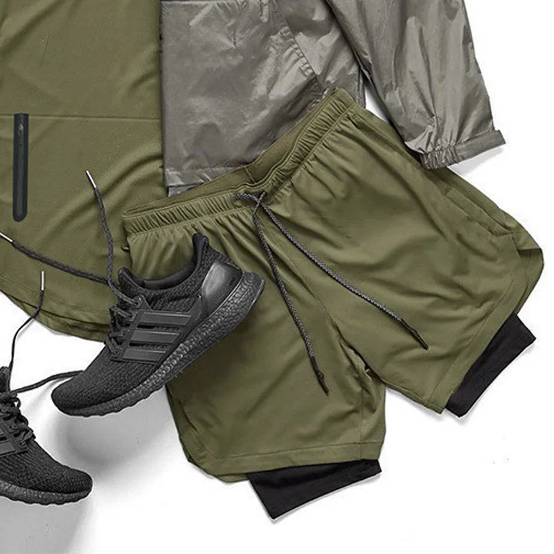 Шорты мужские быстросохнущие 2 в 1, для бега, спортзала, фитнеса, п...