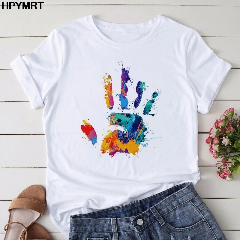 Ослепительная цветная женская футболка с принтом сердца, модная повседневная женская футболка с круглым вырезом, 90s, женская элегантная футболка для молодых девушек, женские топы