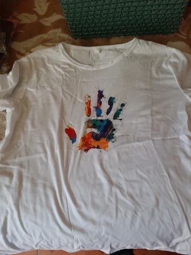 Футболка достаточно неплохая. Яркий принт, ткань не просвечивается. Не 100%котон конечно, но к телу приятная. Заказала размер L на мой М подошёл отлично. Доставка около 3 недель до Украины