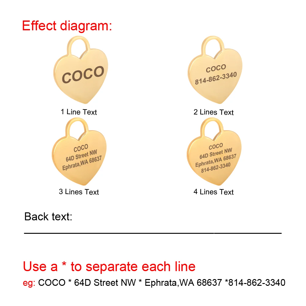 Идентификационная табличка в форме сердца для собак, индивидуальная Модная Золотая табличка из нержавеющей стали для домашних питомцев, защита от потери, маленький, средний и большой размер