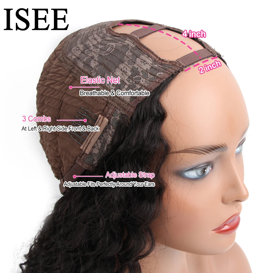 Монгольские кудрявые u-образные парики для женщин 180% Плотность вьющиеся человеческие волосы парики ISEE волосы средняя u-образная форма парики без клея