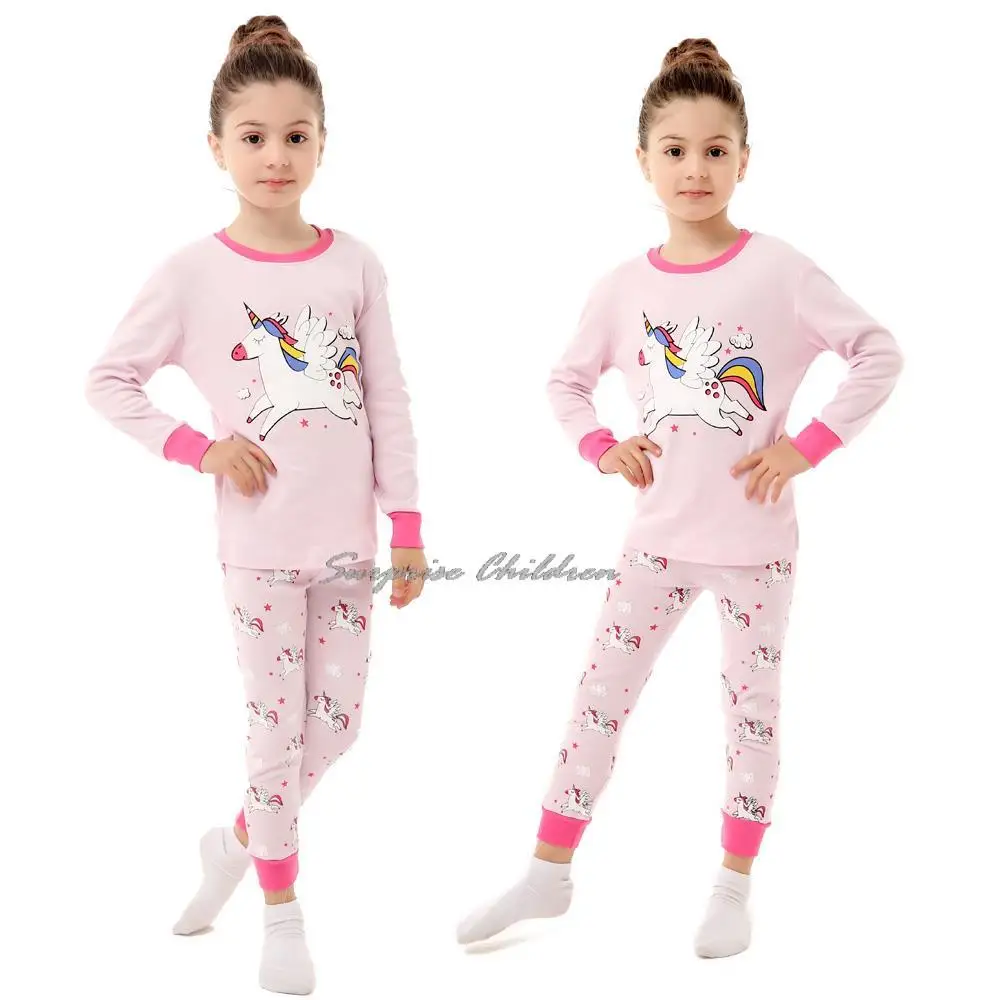 Детская Пижама, Детская Пижама с единорогом, Хлопковая пижама с длинным рукавом для маленьких девочек, детская одежда для дома