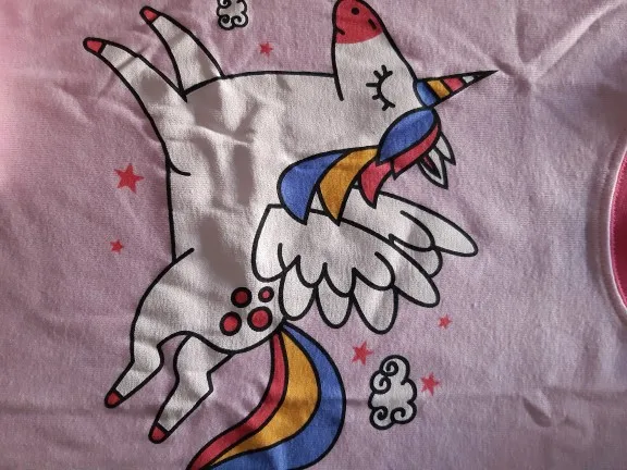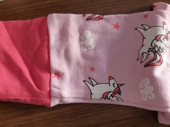 superleuke pyjama voor mijn dochtertje van bijna 2. Ik had alleen verwacht dat de achterkant van het shirt ook bedrukt zou zijn, maar die is egaal roze. Ook erg leuk