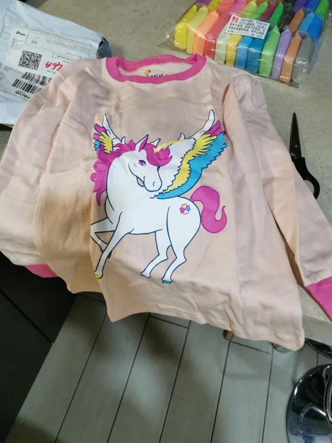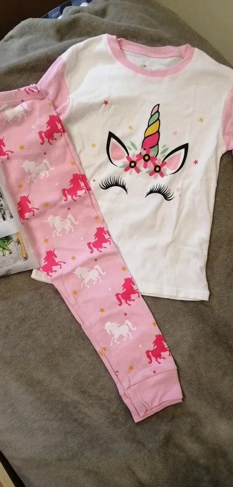 Симпатичные пижамы для дошкольников. Они выглядят красиво, ткань не пахнет и после стирки все равно выглядит так же. Штаны действительно короткие, что вызывает разочарование, так как у меня короткий 4 лет, поэтому она должна была носить 4T вместо 5T, что я заказал. Но даже 5T показывает лодыжки. Рукава топа отличной длины, спасибо! Дочка 1,00 м и 15,5 кг. Доставка посылки занимает 3 недели. Это довольно тонкая ткань и двойной слой относительно просвечивается, но это для сна, так что это нормально
