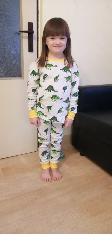 Очень красивые пижамы! Я был очень удивлен тканью, не очень тонкой, Подходит для сезона! Штамп на верхней части не очень детализирован в некоторых местах, но кажется прочным и хорошим качеством. Размер очень хороший, соответствует европейским размерам. Я получил номер 8 на рост 125 см и удобен для ребенка.
