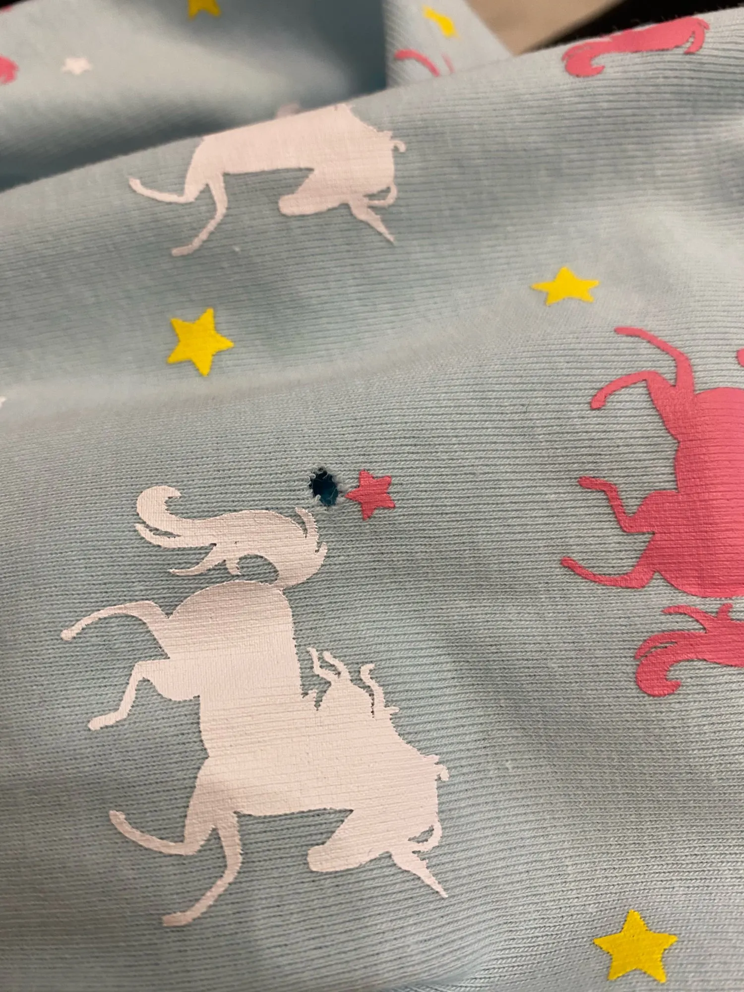 К сожалению, приклейте единороги, когда zusammenlegen mesh. Мы надеемся, что принты будут немного стираться.