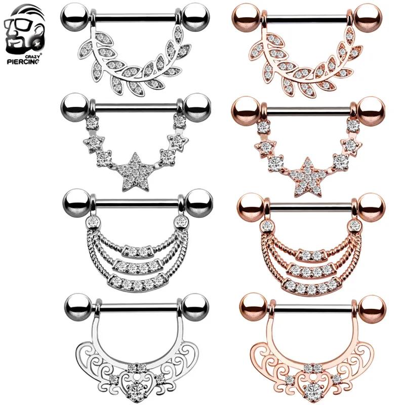 Кольца для сосков, с прозрачным цирконием, 1 пара