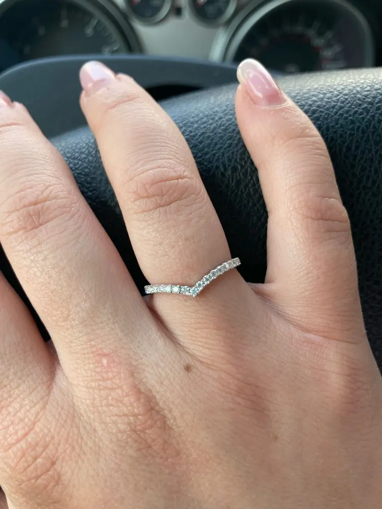 Gem балетки 925 пробы серебро V Форма Укладка кольцо 1,5 мм изогнутые обручальные кольца с муассанитом для Для женщин кольцо на палец