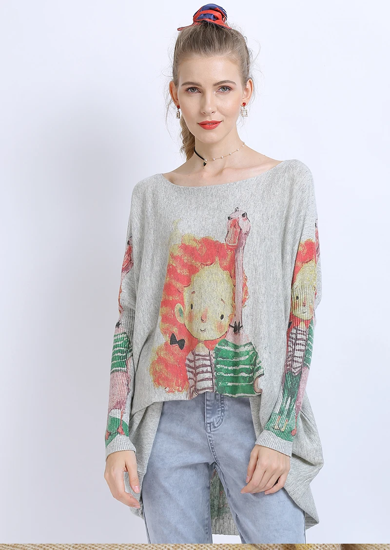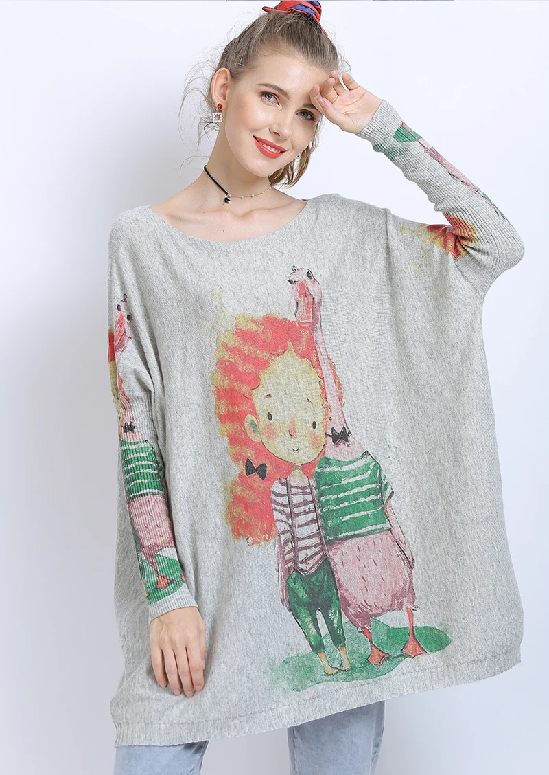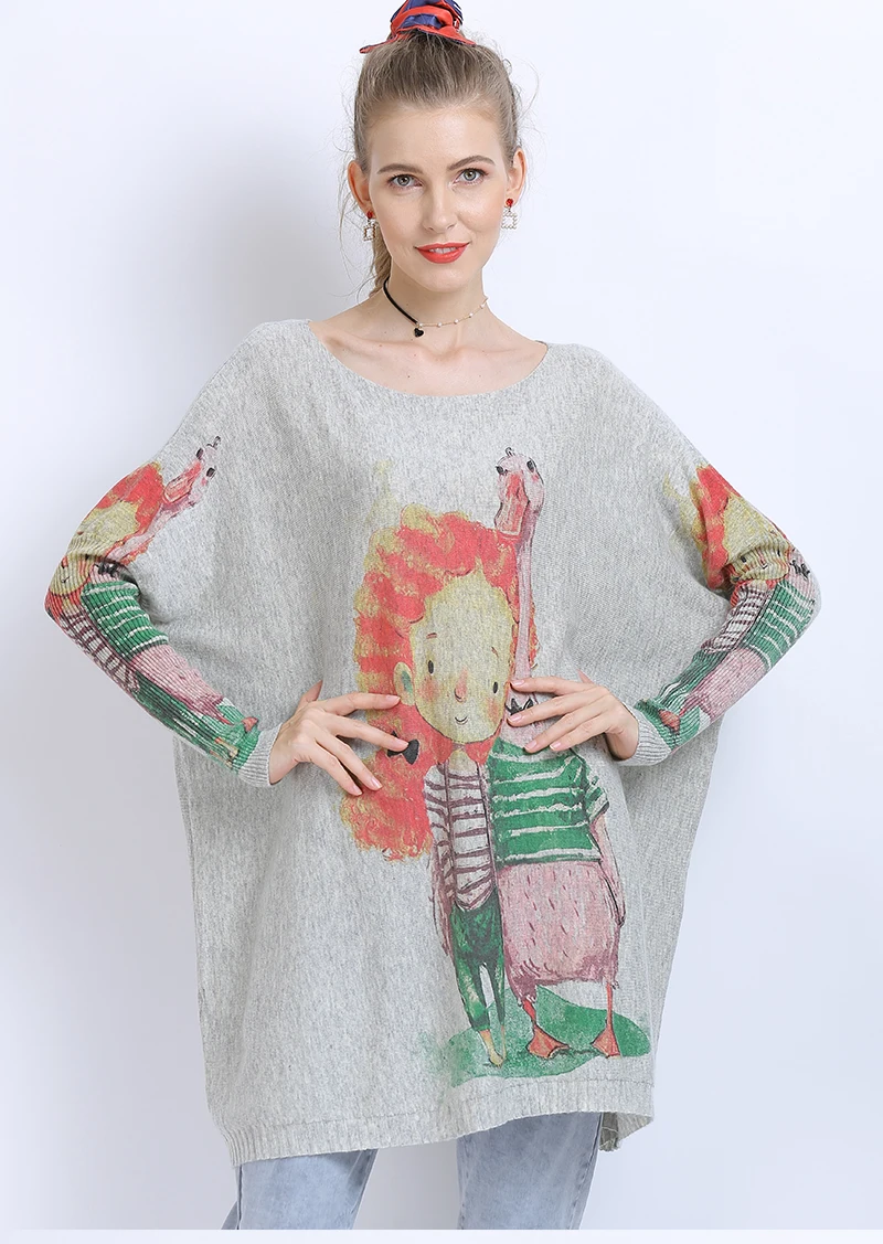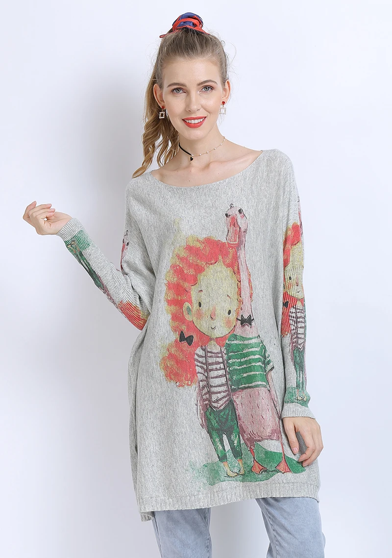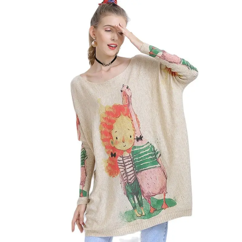 XIKOIзимние свитера больших размеров для женщин, теплые длинные пуловеры, платья, Милый джемпер с принтом для девочек, Повседневные вязаные свитера, Pull Femme