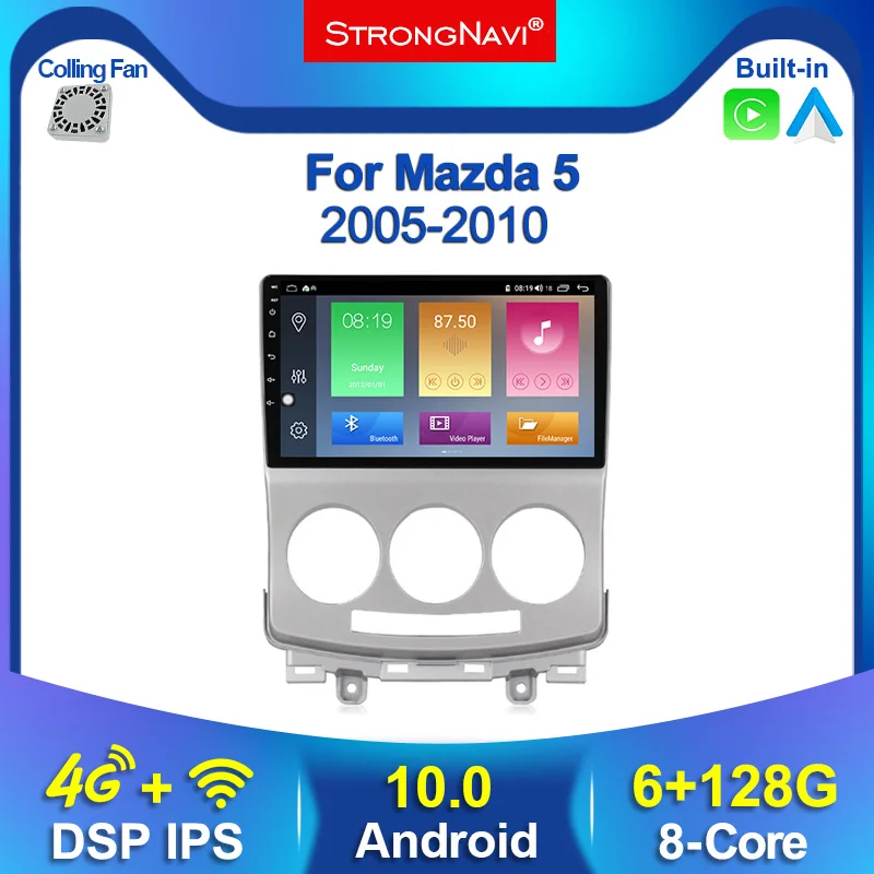 Автомагнитола для Mazda 5 Mazda5 128-2005, 2DIN, Android 10, DSP, 6 + 2010 ГГц, мультимедийный видеоплеер, навигация GPS, Wi-Fi, BT, Carplay, 4G, Lte