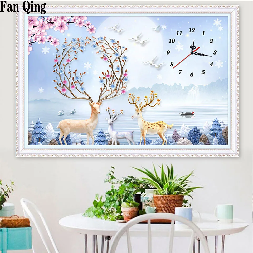 Часы полностью круглые сверла DIY Алмазная картина в скандинавском стиле Лось цветение сливы 5D алмазная вышивка крестом, мозаичный Декор подарок ручная работа