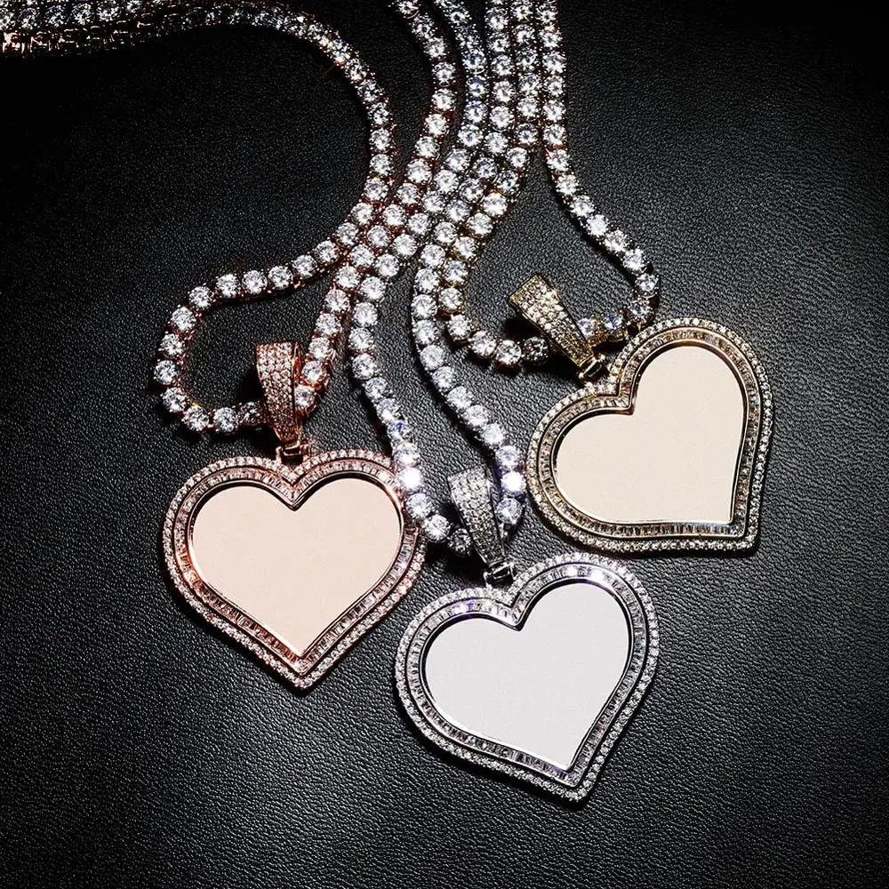 Кулон на заказ GUCY в форме сердца, цепочка с теннисной цепью и кубическим цирконием, ювелирное изделие в стиле хип-хоп, однотонная цепочка с круглой задней поверхностью, под фото