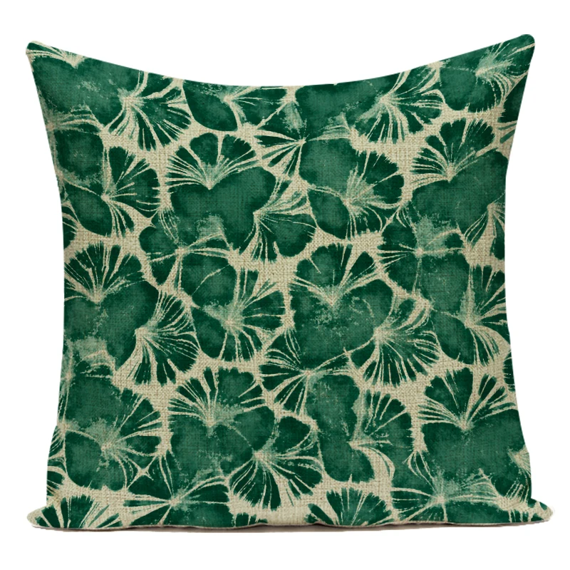 Декоративный чехол для диванных подушек, наволочка с зелеными тропи...