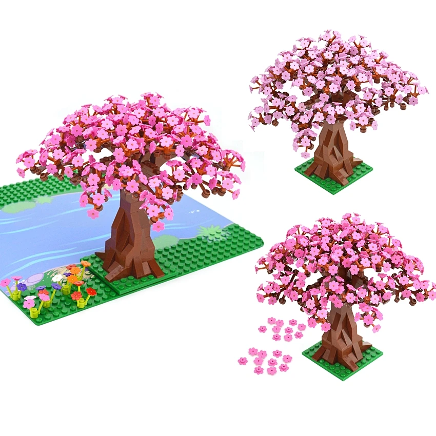 Конструктор MOC детский дерево Сакура, уличный городок, развивающие...
