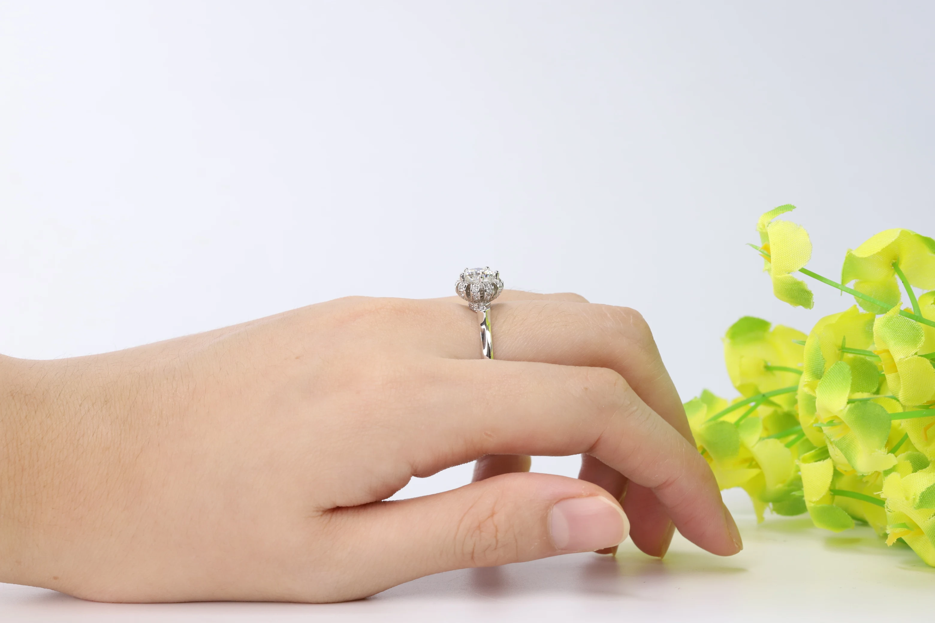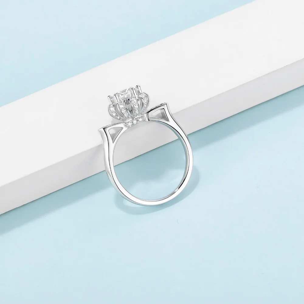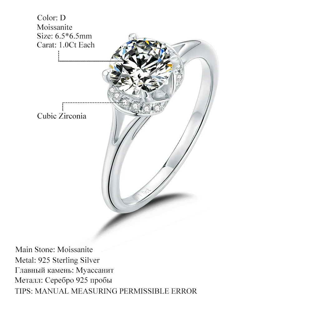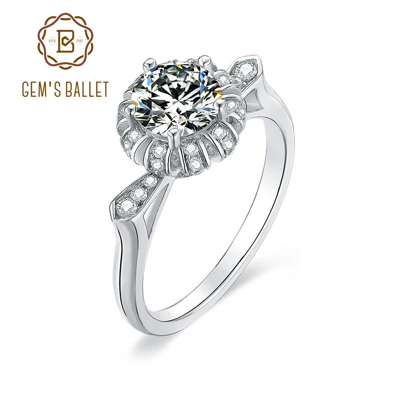 Gem балетки 925 стерлингового серебра Пять зубец кольца Свадебные ювелирные изделия 1Ct камень Муассанит моды цветочного дизайна для женщин кольцо