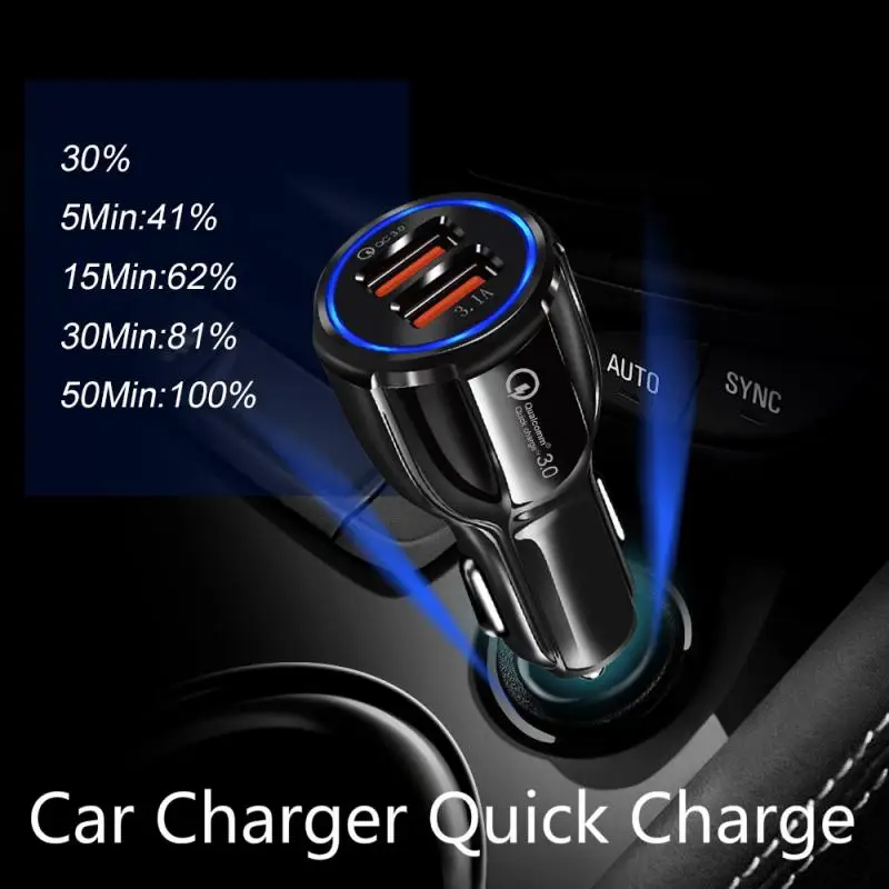 Автомобильное зарядное устройство QC3.0, быстрая зарядка с 2 портам...