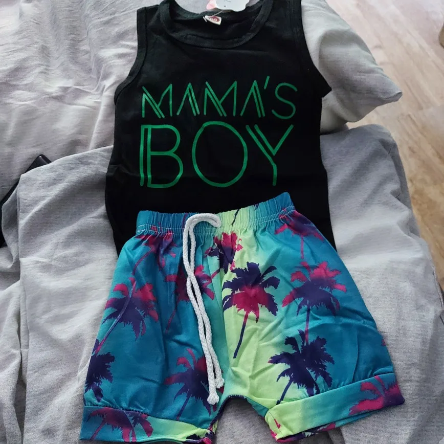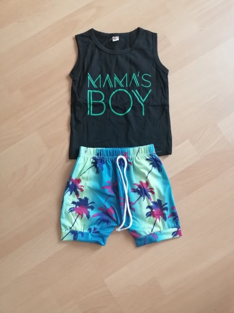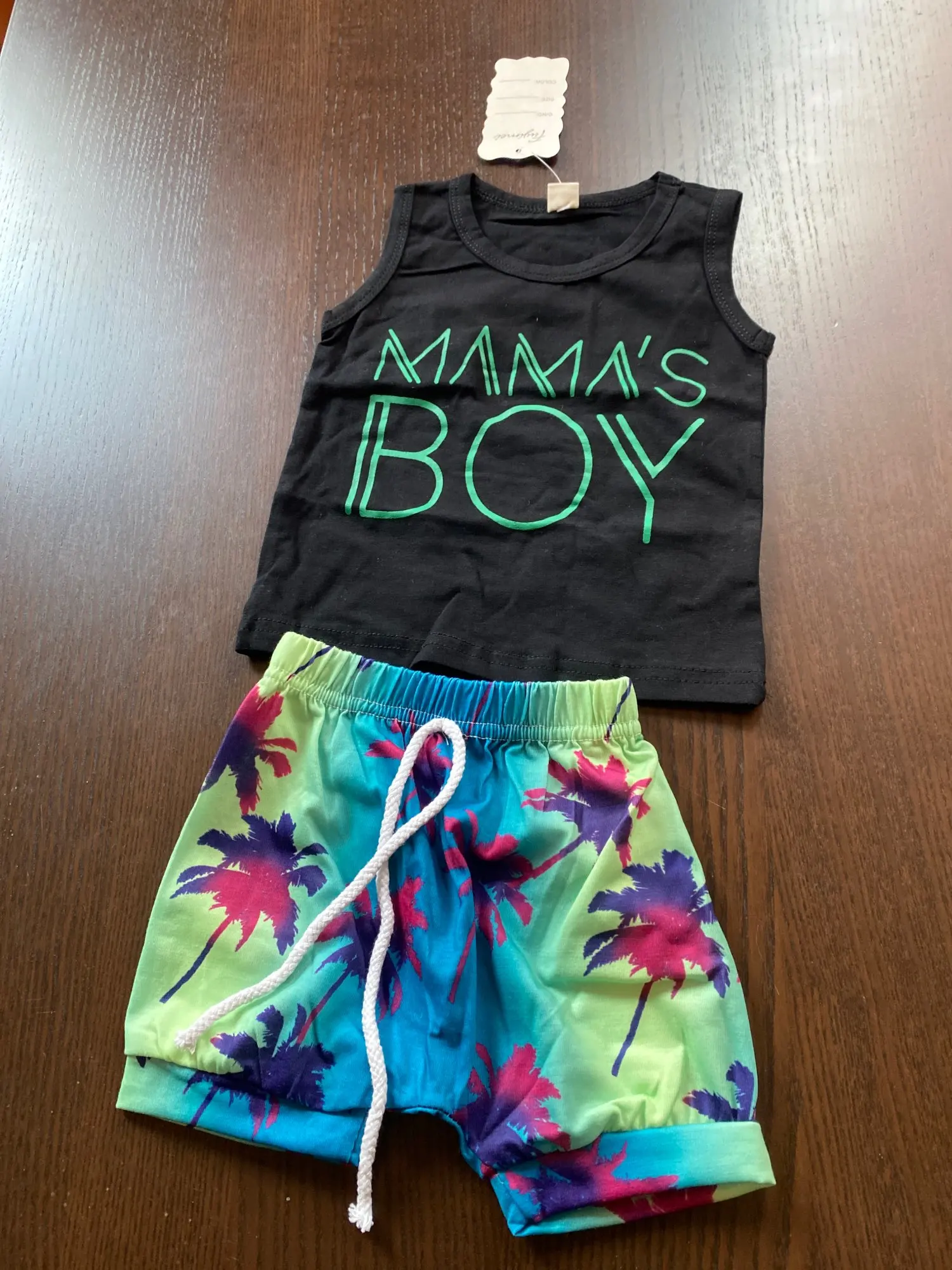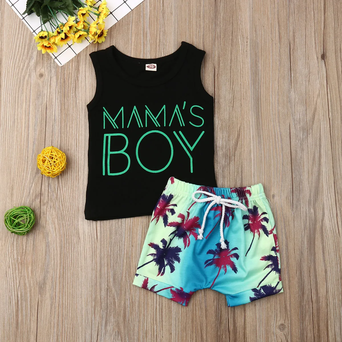 Майка и шорты для мальчиков, из 2 предметов, летняя повседневная одежда с надписью, для новорожденных, пляжный костюм