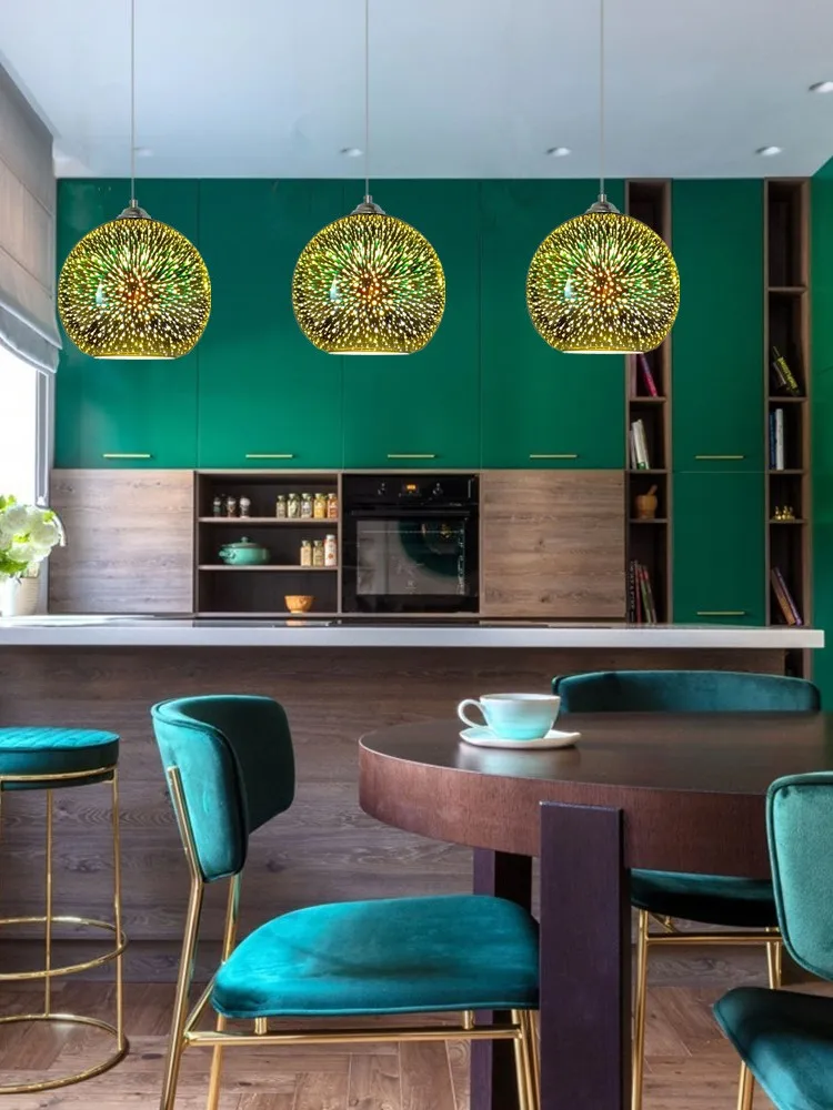 Современная зеркальная стеклянная Подвесная лампа, Цветной 3D светильник из стекла для кухни, минималистичный светильник для бара, кофе, столовой, освещение с креплением