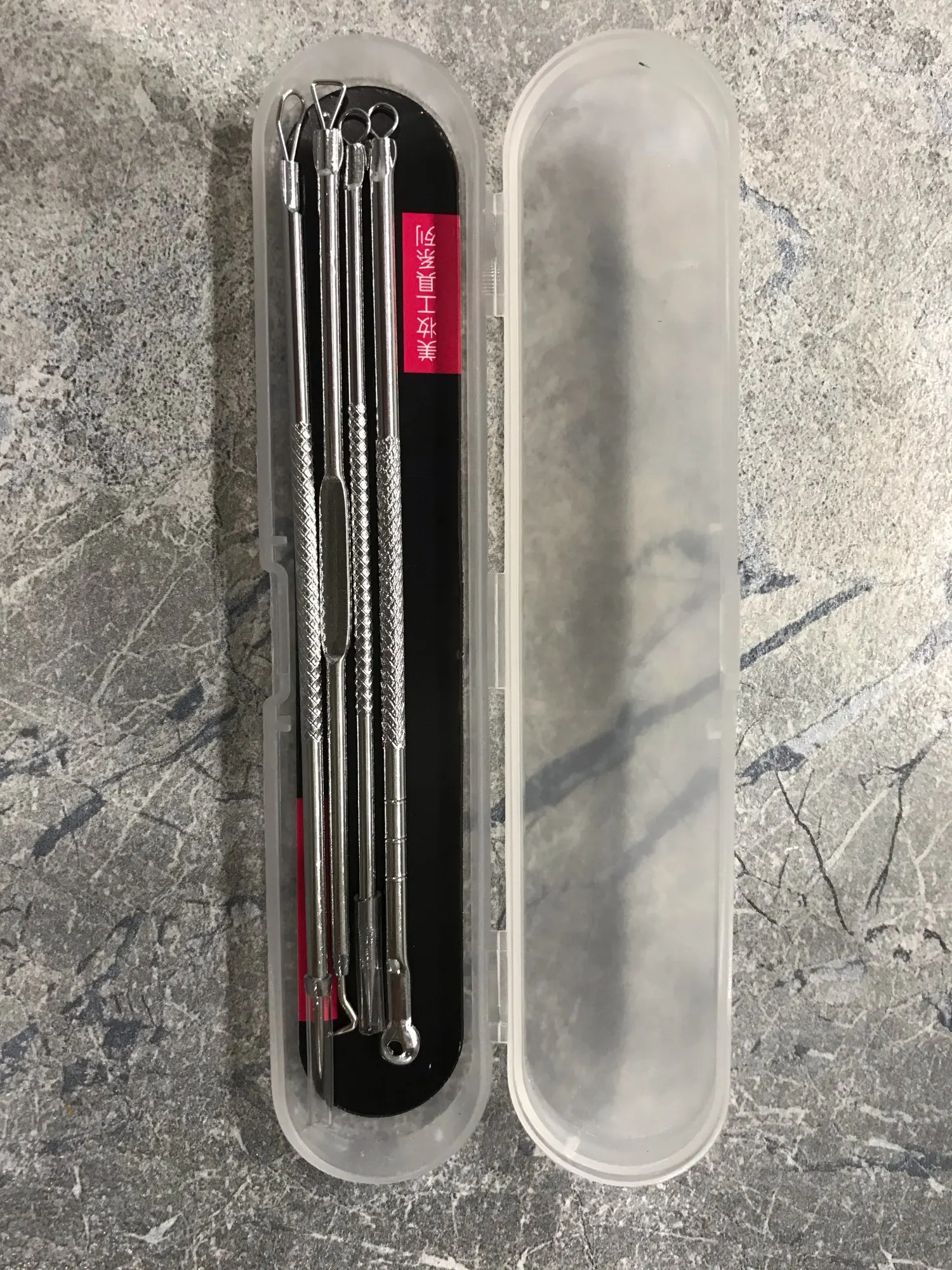 4 шт. Иглы для удаления прыщей из нержавеющей стали, инструменты для удаления угрей, ложка, инструменты для ухода за кожей лица, иглы, очиститель пор лица