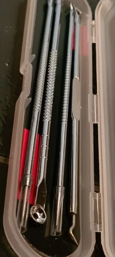 Очень хорошие инструменты. Качество отличное. Можно стерилизовать. Металл очень упругий и устройства к нажатию, не сгибается. Удобно хранить в кейсе, который пришел в комплекте. Доставка быстрая, меньше 3х недель. Рекомендую.