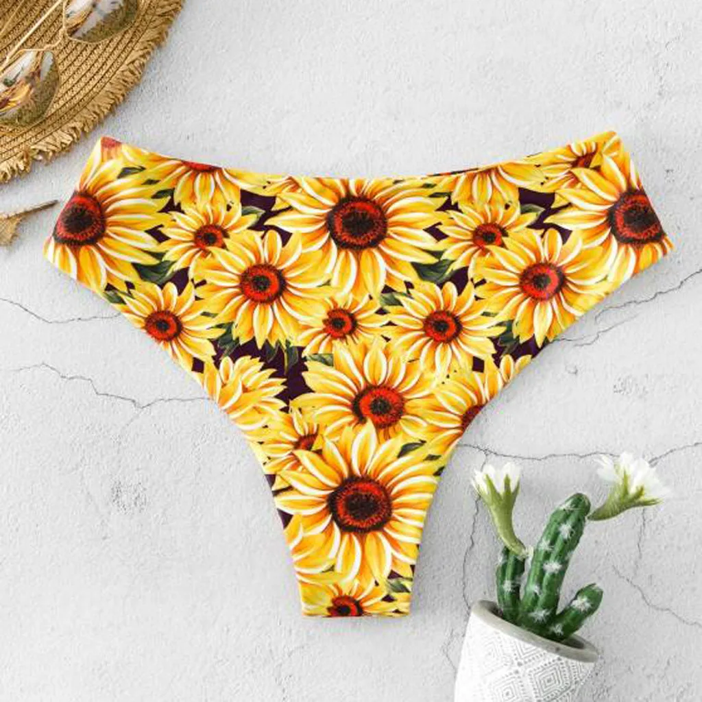 Бикини с принтом подсолнухов, купальная одежда 2021, Женский винтаж...