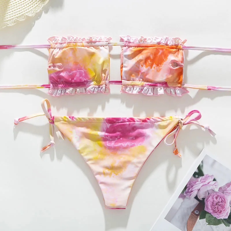 Купальник-бандо, женский купальный костюм, бикини на шнуровке 2021,...