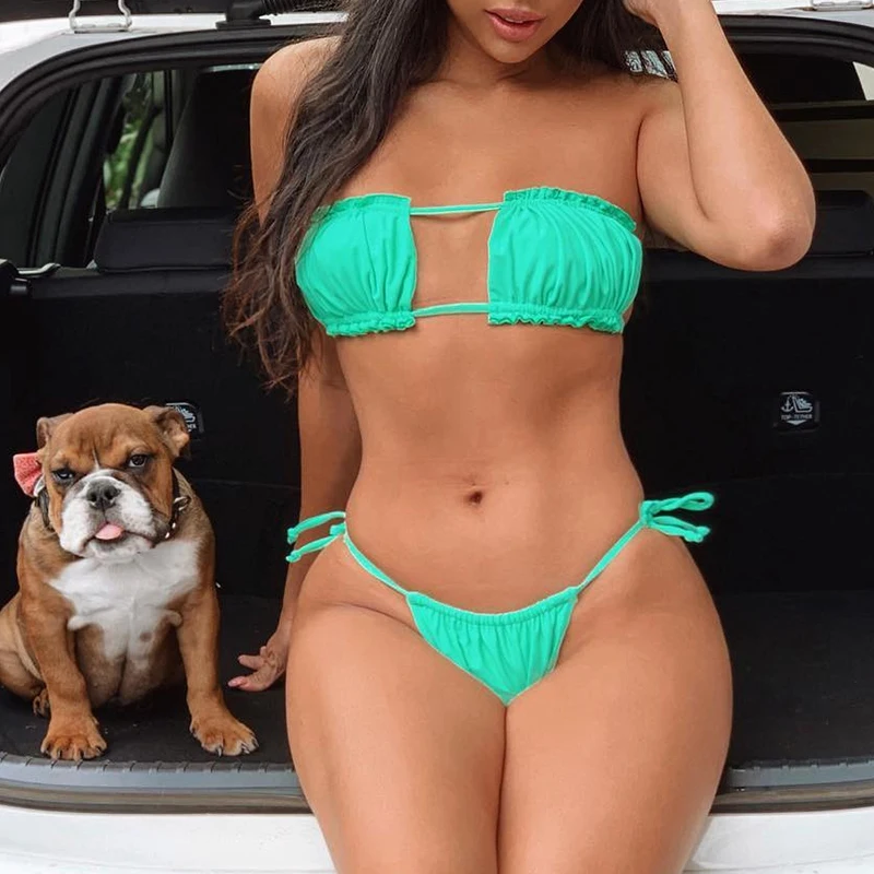 Сексуальный комплект бикини бандо с вырезами, однотонный купальник,...
